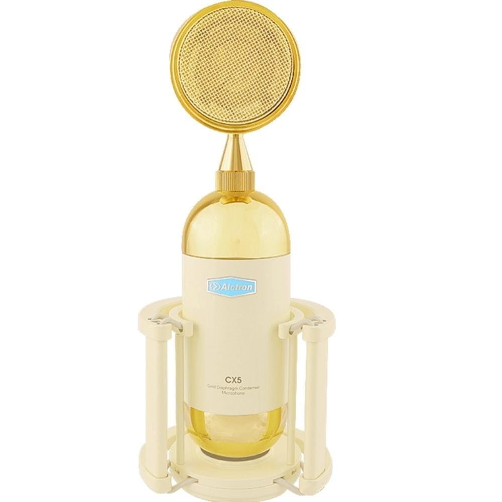 CX5 es un micrófono de condensador de grabación con patrón polar cardioide. Adopta una cápsula de diagrama grande de 34 mm que hace que la grabación suene más cálida y natural. El micrófono viene con un filtro antipop de cápsula de plástico para protegerlo de la erosión de la saliva. La cáscara utiliza una aleación de alumbre y un proceso de chapado en oro, el color amarillo brillante enamora a cualquiera.