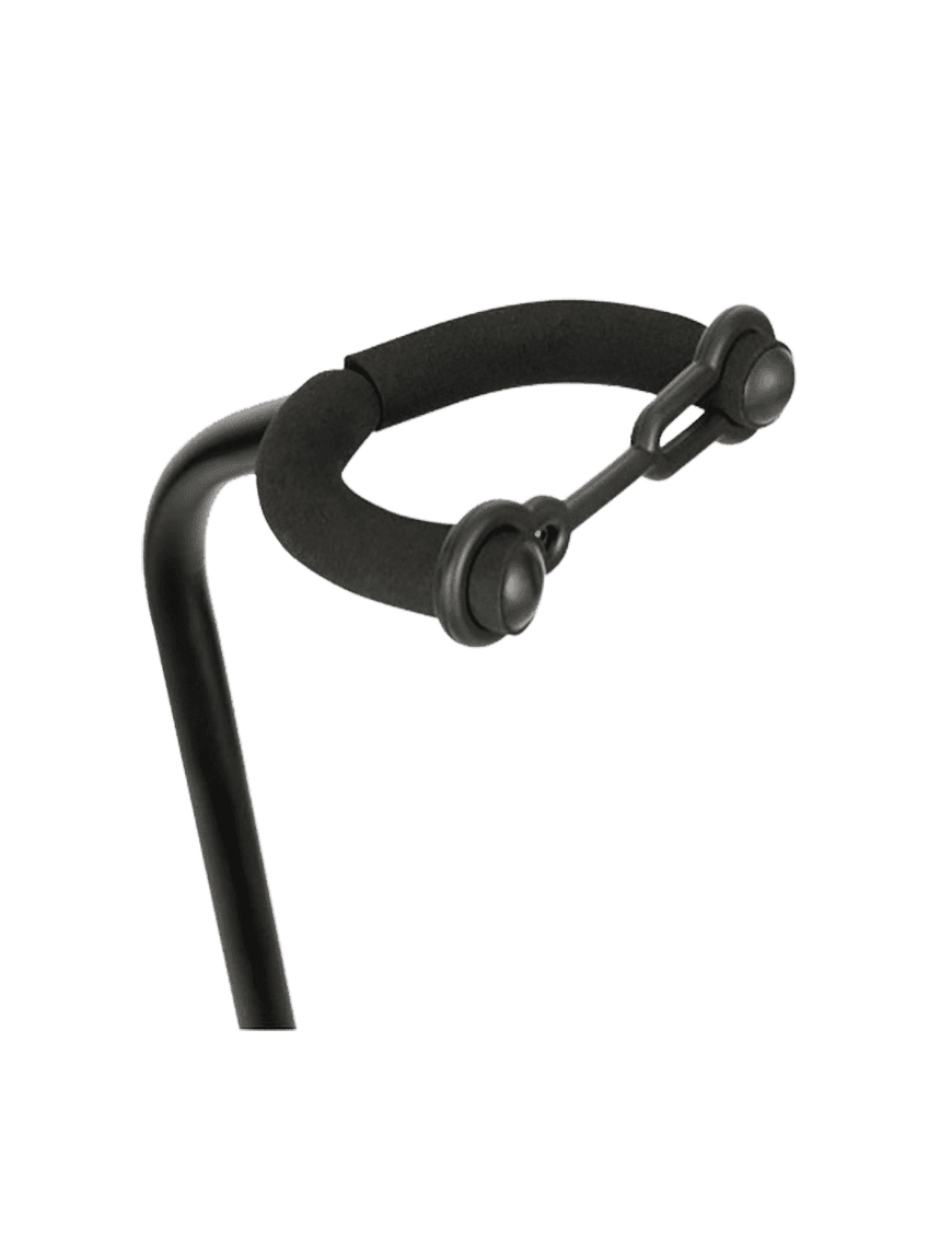 - Cuello con banda de seguridad para evitar que la guitarra de salga del atril