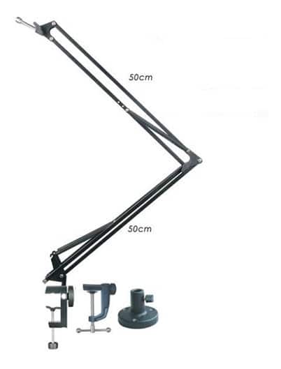 El Atril para mesa, escritorio es el accesorio de micrófono, perfecto para cualquier radio, Podcast o configuración de estudio en casa. Su diseño articulado proporciona un alcance máximo horizontal / vertical del brazo de 50cm cada articulación», brindando a los usuarios una flexibilidad conveniente para la posición del micrófono, también cuenta con resortes internos que permiten un posicionamiento silencioso y sin esfuerzo, ideal durante la grabación o durante transmisiones en vivo.