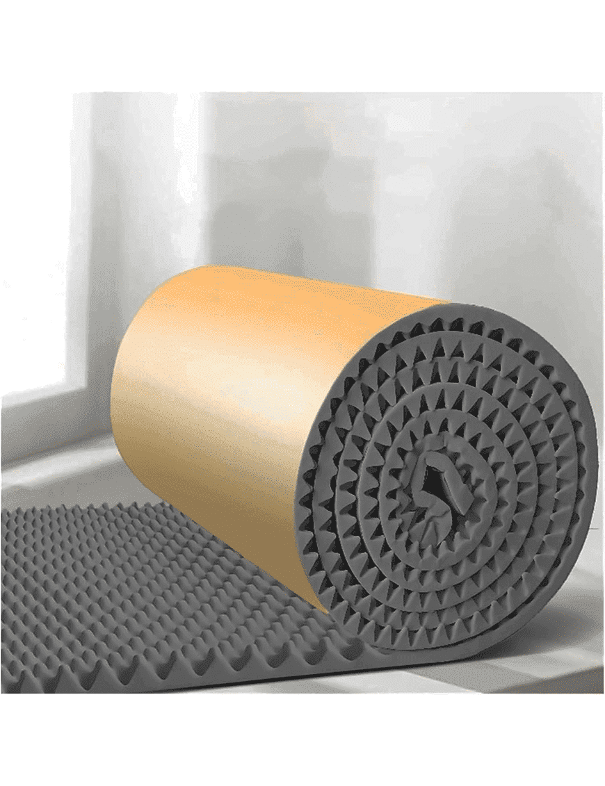 Paneles de espuma insonorizantes: paneles tienen un grosor de 5 centímetros 1 metro de ancho y 10 metros de largo en rollo, para mejorar la absorción de baja frecuencia. Los paneles de espuma acústica para paredes de estudio tienen una excelente elasticidad permitiendo amoldarse rápidamente a las superficies irregulares.