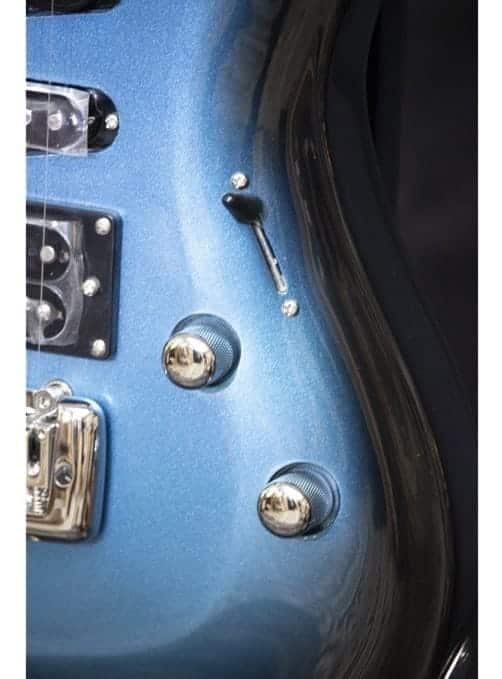 - Cápsulas: Aria AST-1 Single Coil x 2, APH-1 Humbucker x 1 marco negro