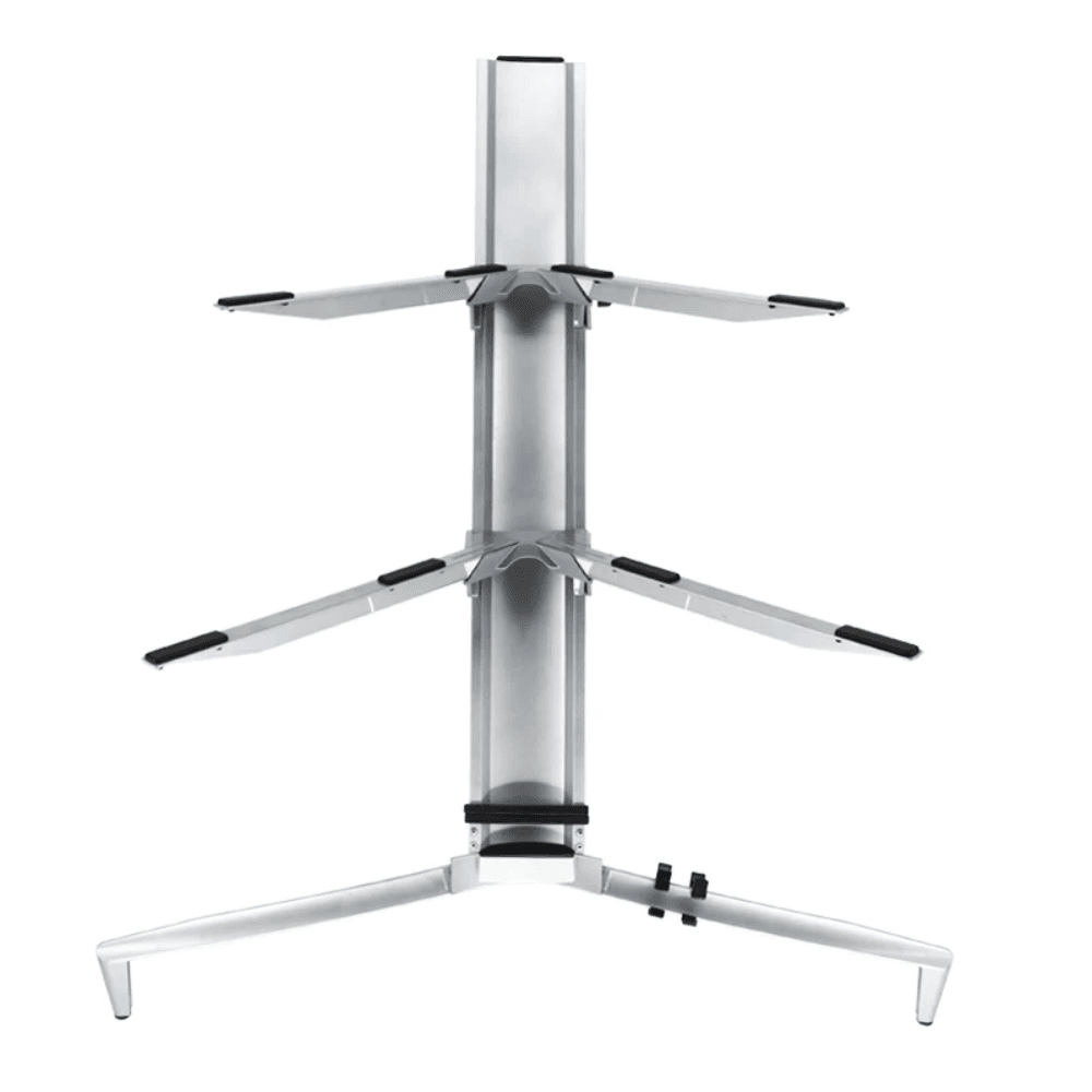 El HEB Z80 es un soporte para teclado doble. Su diseño hace sencillo colocar soportes para uno o dos teclados de manera simultanea además de permitir armar y desarmar el atril con facilidad. Esto lo hace ideal para escenarios y uso en casa.