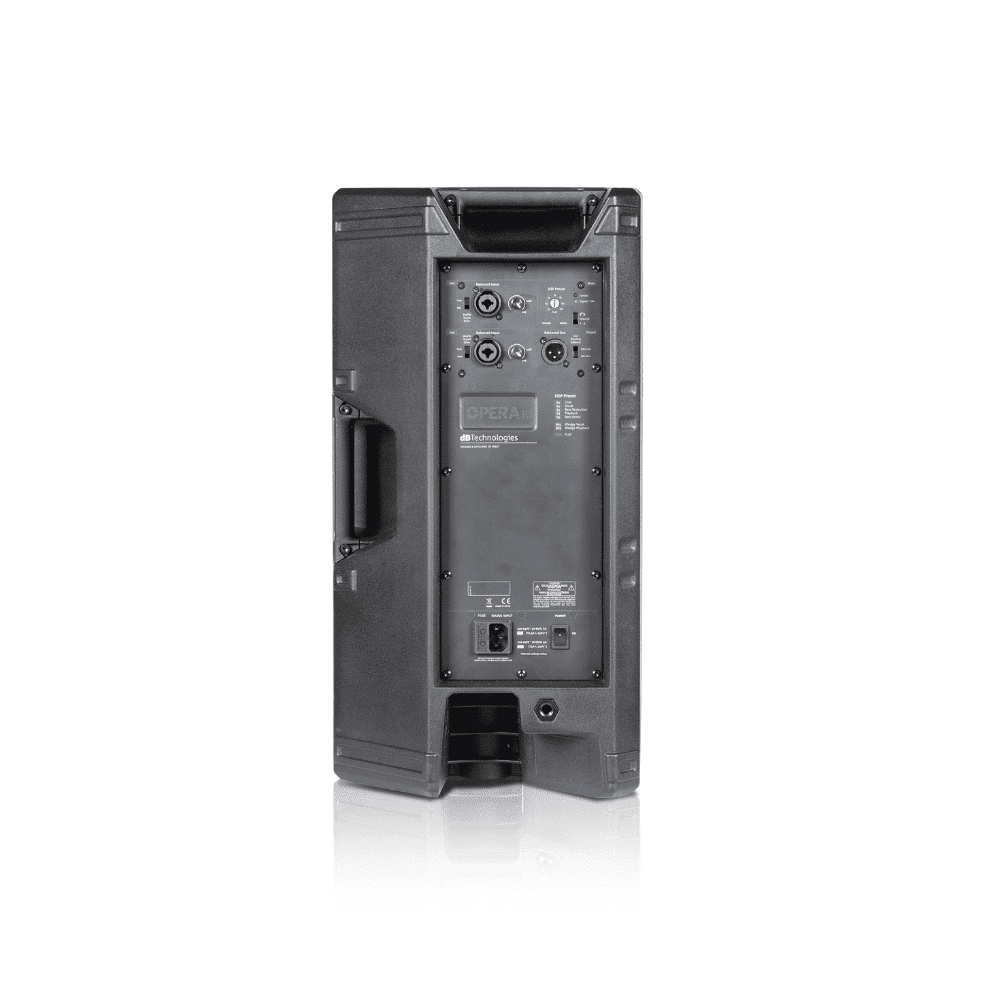 1200 W Peak / 600 W RMS, Clase D. de 2 Vías, Amplificador SMPS, Woofer de 10″, con limitador.