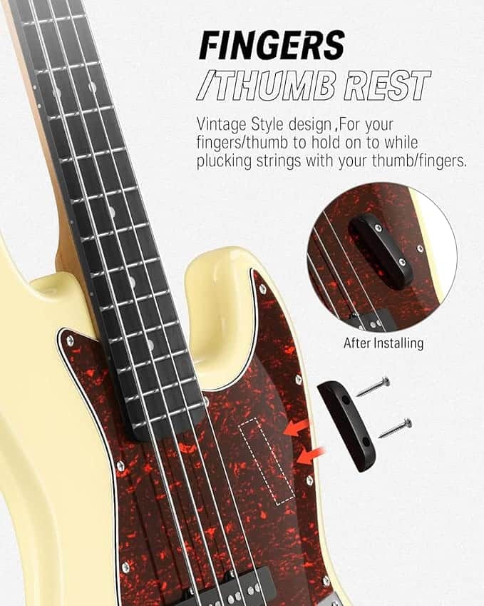 - Reposa dedos/pulgar: Diseño de estilo vintage para que tus dedos/pulgar se sujeten mientras tocas cuerdas con el pulgar/dedos.