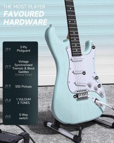 - Accesorios de alta calidad: Incluye un estuche para guitarra eléctrica Donner, un miniamplificador de 5 W y un afinador. Ideal como regalo para principiantes.