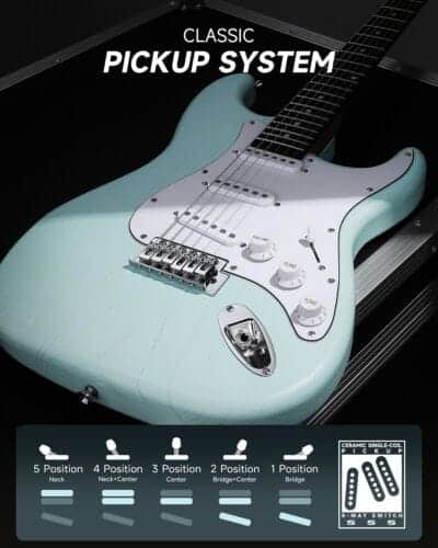 - Diseño de color innovador: La guitarra eléctrica DONNER combina un cuerpo resonante y nuevos colores para mostrar un estilo clásico moderno y capaz.
