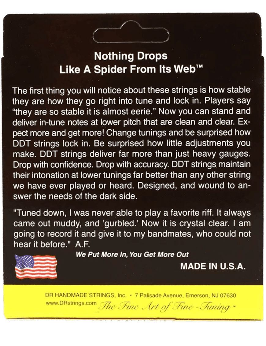Drop-Down Tuning™ (DDT™), mantenga su entonación en afinaciones más bajas mucho mejor que cualquier otra cuerda que hayamos tocado o escuchado.