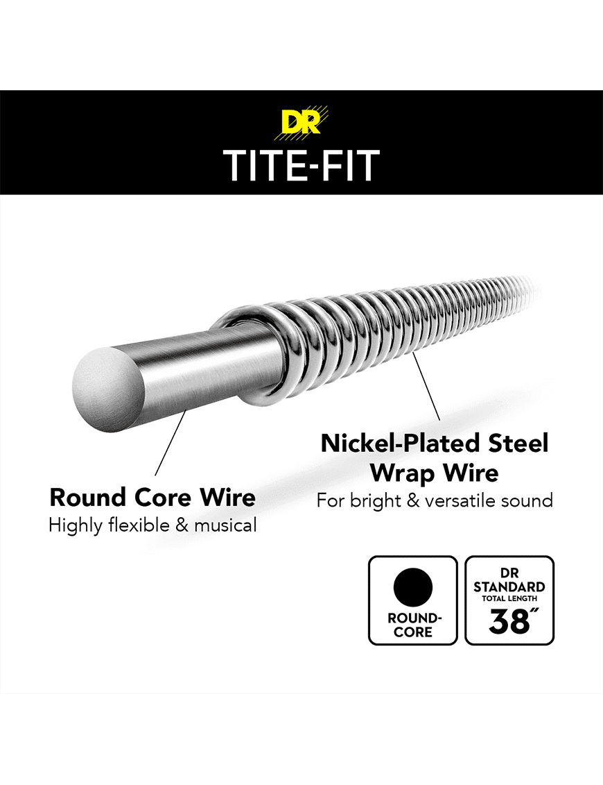 Las cuerdas de guitarra eléctrica TITE-FIT™ cuentan con un alambre envolvente de acero niquelado en un núcleo redondo para brindar un sonido rico y musical. Esta construcción clásica proporciona una fundamental sólida con sobretonos equilibrados. Compression Winding nos permite colocar más masa en la cuerda, lo que sentimos que mejora el tono, le da una sensación más suave y prolonga su vida. Estas características excepcionales han hecho de TITE-FIT™ la cuerda elegida por los mejores guitarristas durante más de 30 años. La combinación de los mejores materiales estadounidenses disponibles con un estricto control de calidad garantiza que estas cuerdas cumplirán incluso con los altos estándares de los guitarristas más exigentes. Disponible en set de 6, 7 y 8 cuerdas.