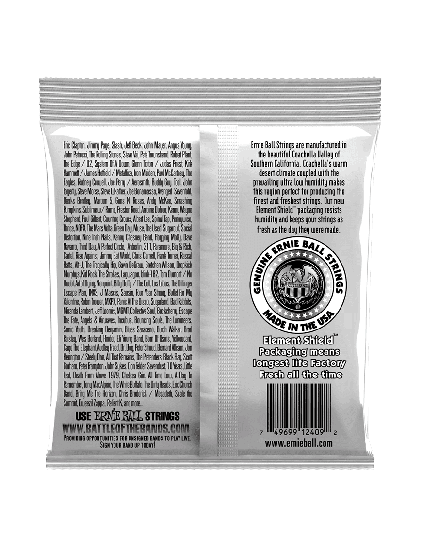 Cuando abres un paquete de sus cuerdas hoy, sabes que estás obteniendo un conjunto de cuerdas de calidad diseñado para darle un gran tono, rendimiento confiable y larga duración. ¡No puedes equivocarte cuando te cuelgas de las cuerdas de Ernie Ball®!