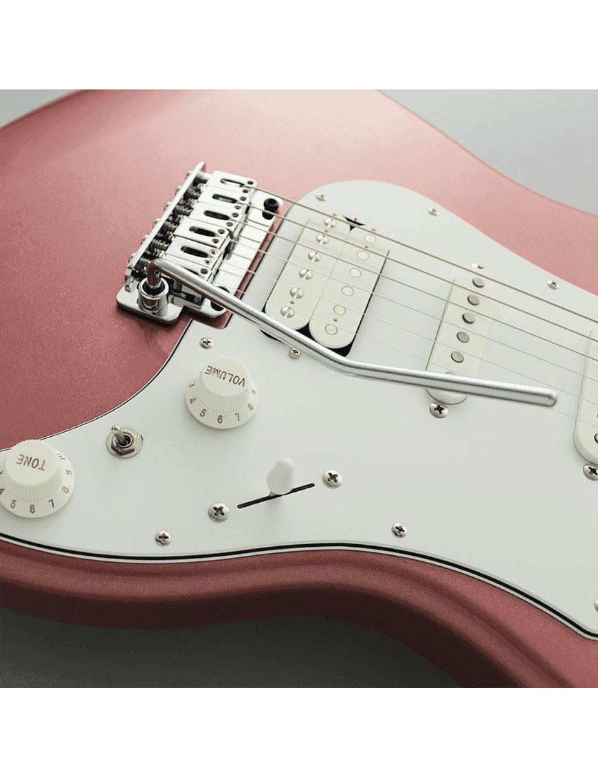 La posición de las cápsulas es SSH (Single-Single-Hum), que ahora es la corriente principal, y el control es 1 volumen, 1 tono, interruptor de palanca de 5 VÍAS. El mini interruptor entre el volumen y el tono es la función de derivación de la bobina de la cápsula trasera, y al encender el interruptor (empujándolo hacia usted), solo suena un lado de la cápsula Humbucker y se puede obtener un sonido nítido similar a un de cápsula pseudo-único.