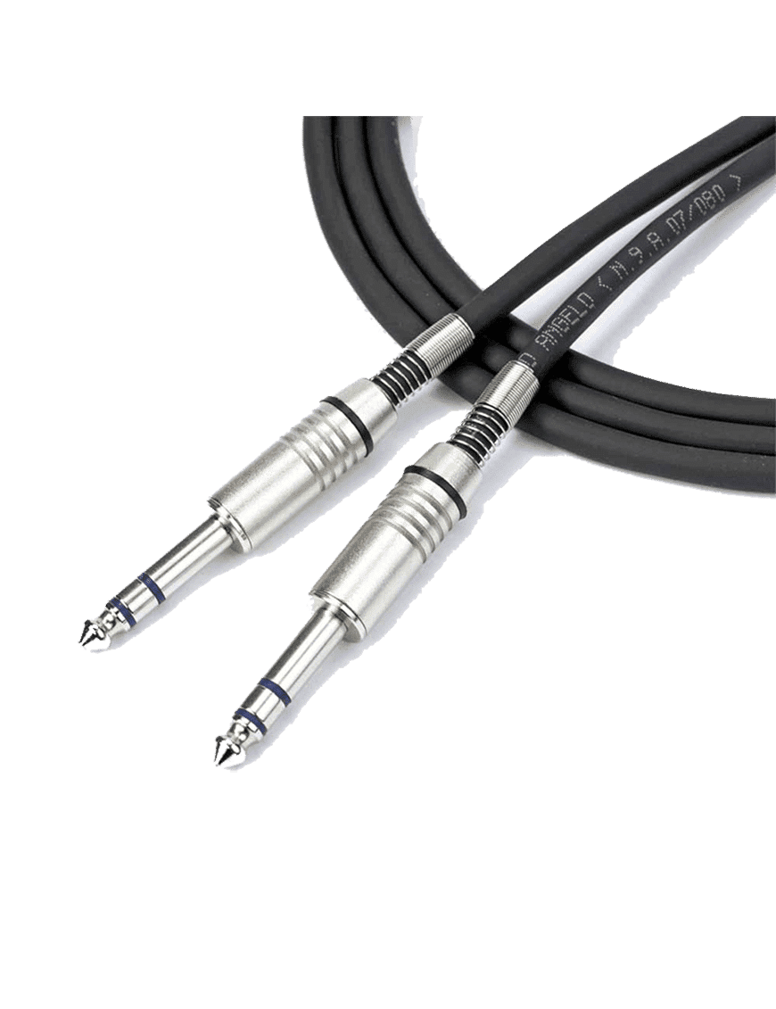 Cable con conector Plug TRS ¼» para interconexión con otros equipos estéreos, con conectores Plug TRS ¼». Cable fabricado con aleación de cobre OFHC y calibre de 2 x 0.30 mm². Montado con conector Plug TRS estéreo (¼» Jack) a Plug TRS estéreo (¼» Jack).