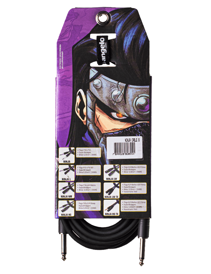 Creada para satisfacer las necesidades de músicos que utilizan sus instrumentos musicales con menos intensidad, la línea Ninja de Santo Angelo® utiliza procesos industriales más económicos sin perder la calidad de las materias primas de los otros modelos de cables de la marca.