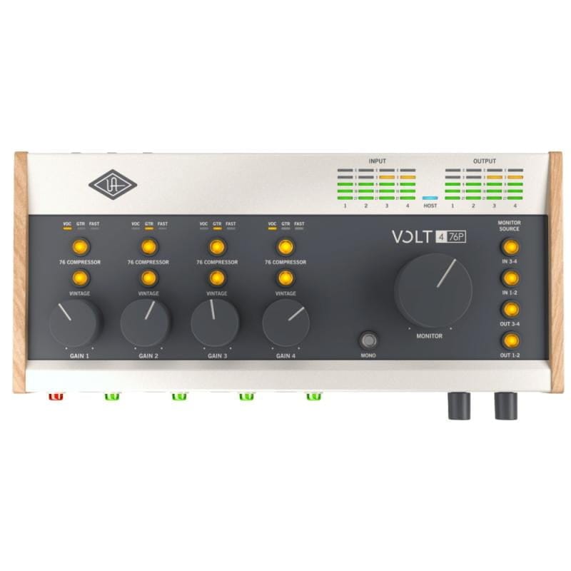 La Audio Volt 476P aprovecha la reconocida experiencia analógica de UA para ofrecer una interfaz de audio USB-C digna de un legado de décadas. El Volt 476P cuenta con circuitos analógicos de primer nivel, junto con conversión AD/DA de 24 bits/192 kHz líder en su clase, lo que le permite crear producciones musicales, transmisiones en vivo y podcasts con sonido profesional. Esta interfaz de audio cuenta con cuatro preamplificadores de micrófono con sonido analógico conmutable de estilo 610 y medición de entrada conveniente. Sin embargo, la joya de la corona del Volt 476P es su compresor FET derivado de 1176 incorporado con tres modos de aplicación de botón pulsador. Más allá de eso, seis salidas analógicas y dos salidas de auriculares hacen que el monitoreo sea instantáneo, además de que obtiene monitoreo directo para una operación de latencia cero. También obtiene E/S MIDI para sus sintetizadores y controladores.